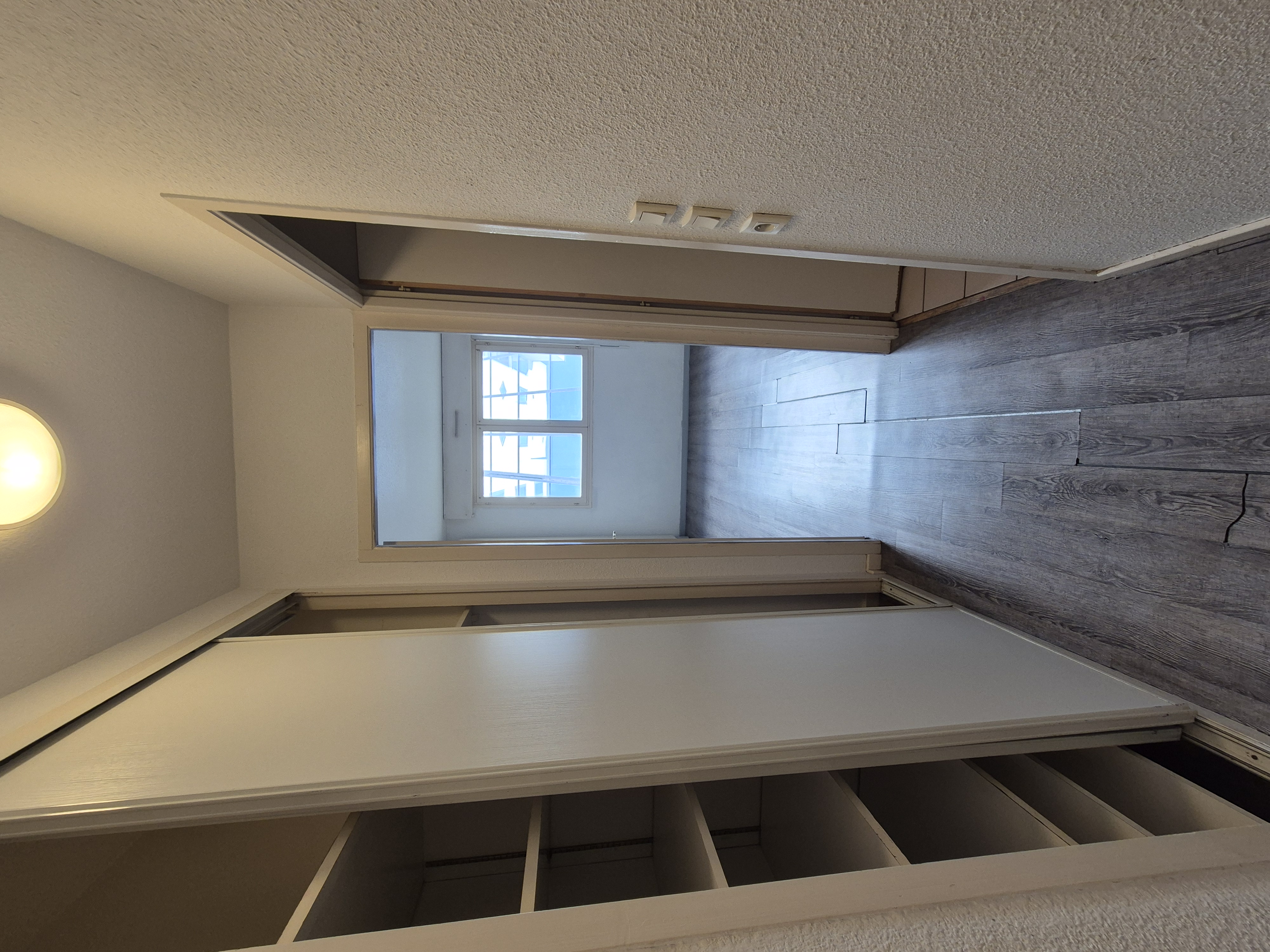 Il comprend une entrée avec placard, grande pièce principale avec cuisine ouverte et équipée, salle de bains, WC.
